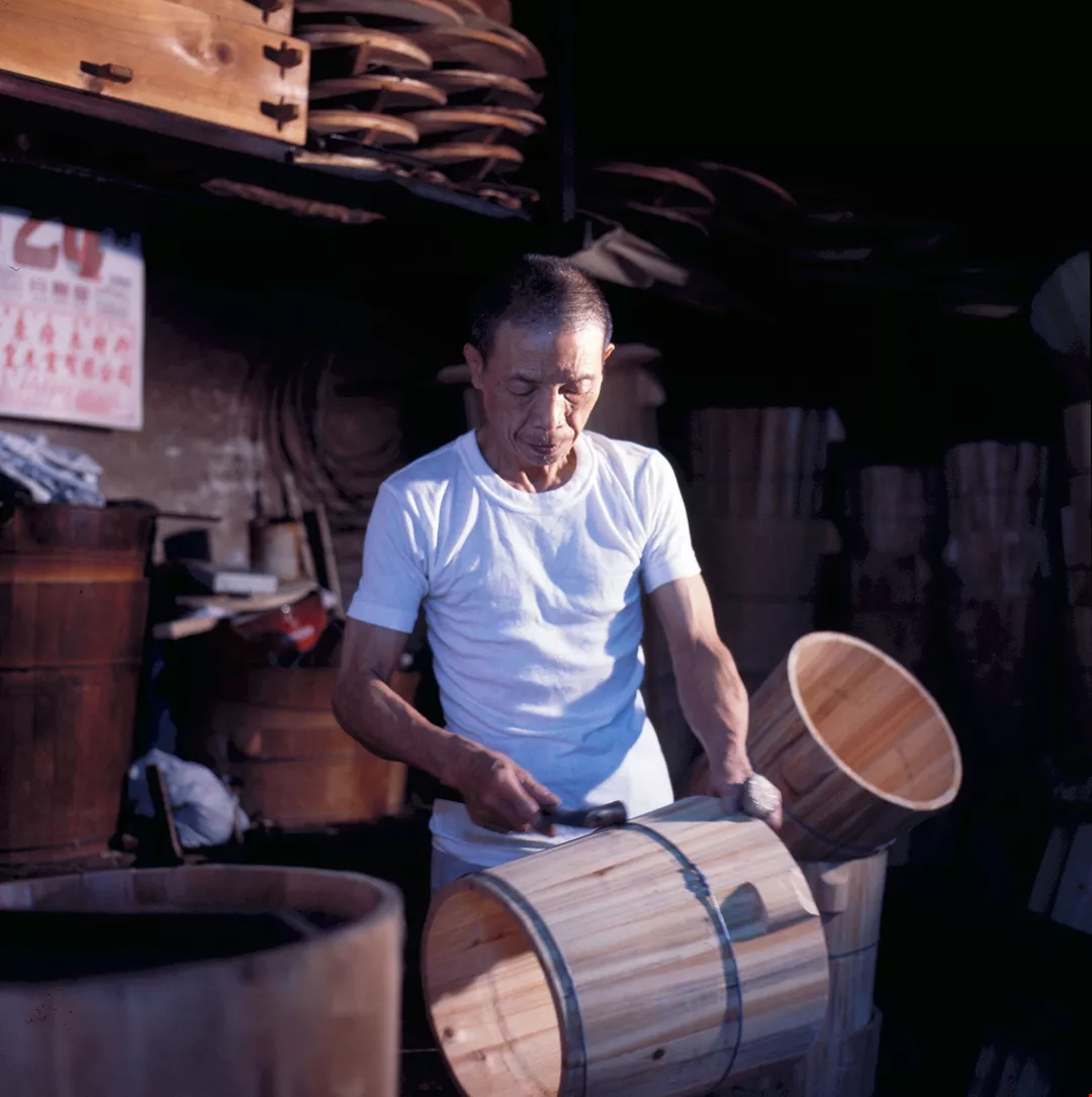 錯落疊起的木桶,是全靠手工製作的,但現在會這一行手藝的已愈來愈少了。