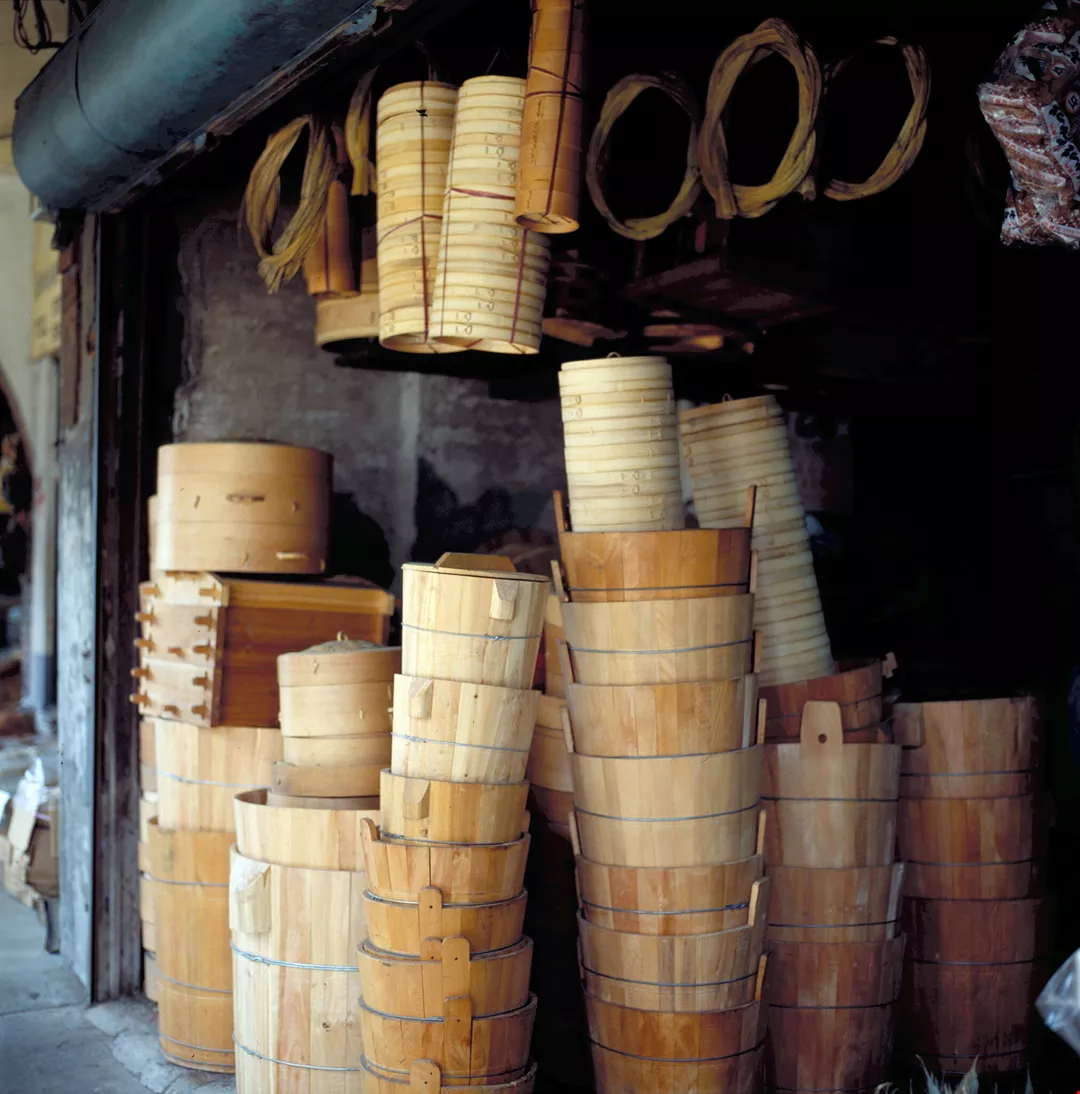 那些竹製畚箕、竹簍、米籃、蒸籠……已愈來愈少見了。「塑膠製品的便宜、耐用,竹製品是趕不上的!」長夏的午後,老闆娘懨懨的吹著電扇,她的腦子裏已開始考慮這個店面是否要隨古老器具的淘汰而結束了。