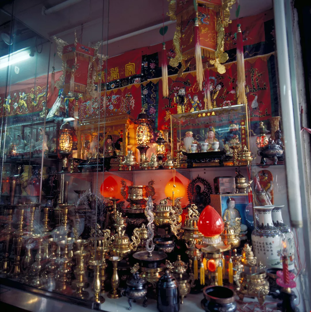 佛具店櫥窗中的各式佛具。