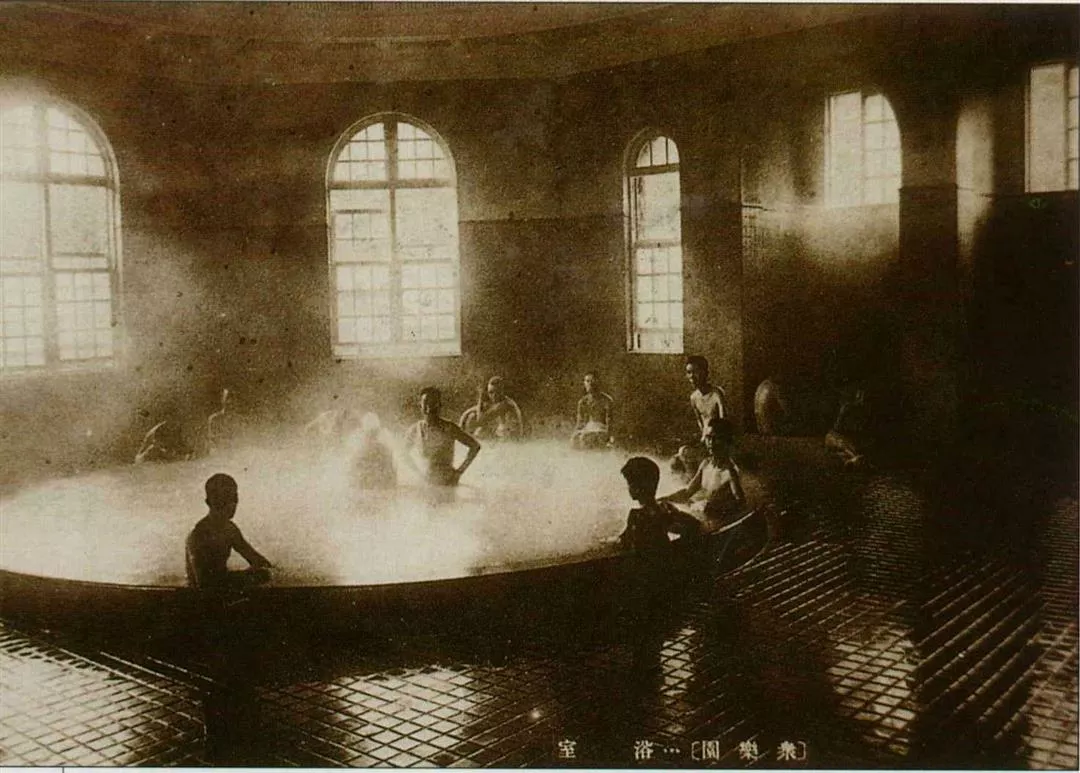 民國四年落成的北投溫泉公共浴場,原本客人是以日本軍官為主,現在則是北投居民的天下。(北投文物館提供)