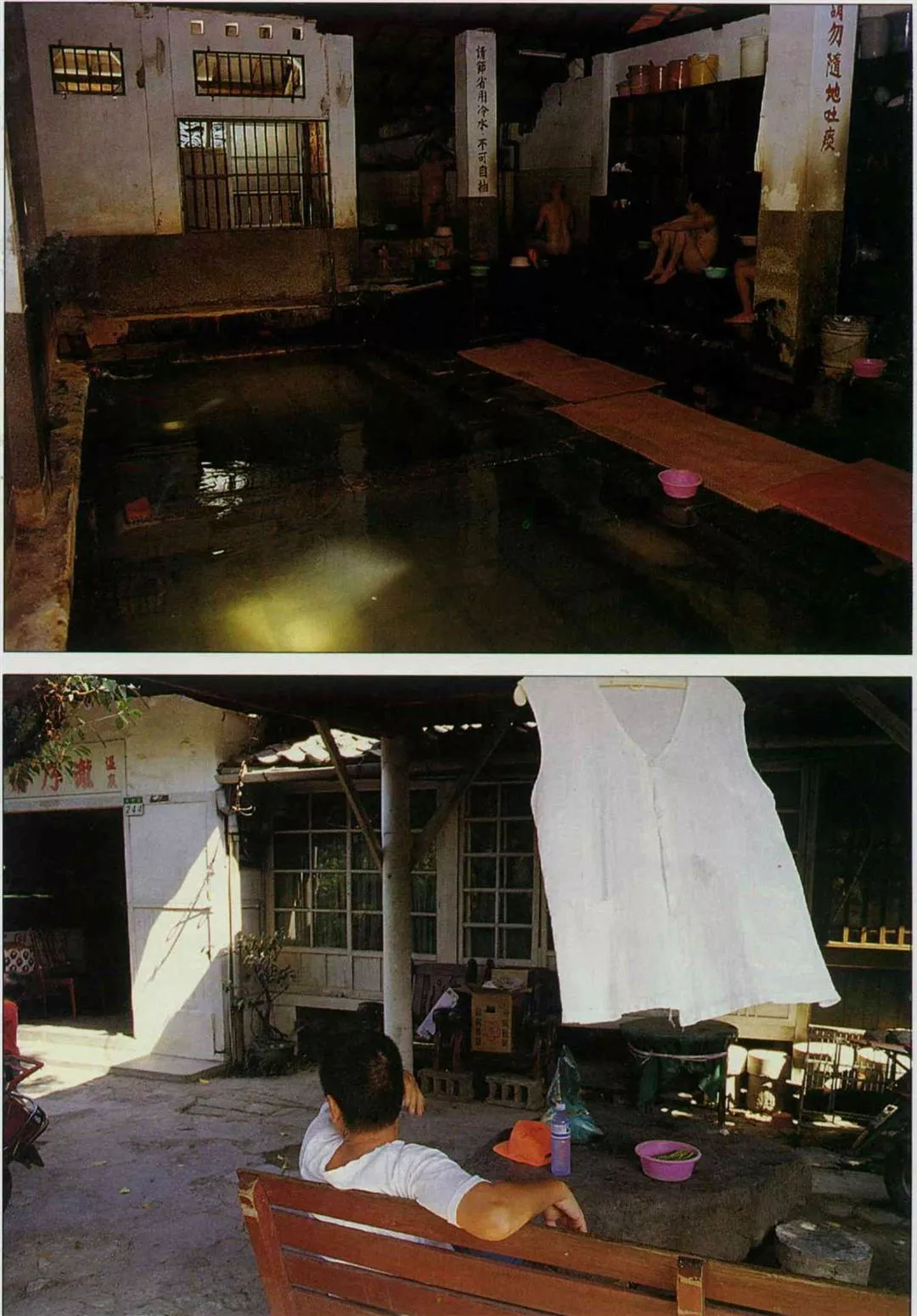 (右)洗完溫泉,舒舒服服地泡泡茶、吹吹涼風,人生至樂,不過如此。