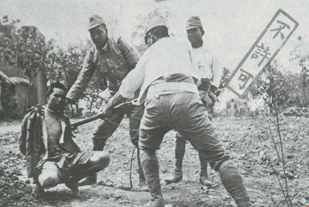 日軍侵華期間以中國俘虜練習刺槍。