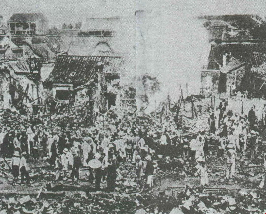 被轟炸後的南京市區。