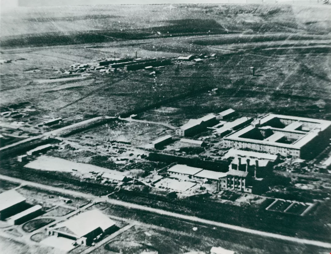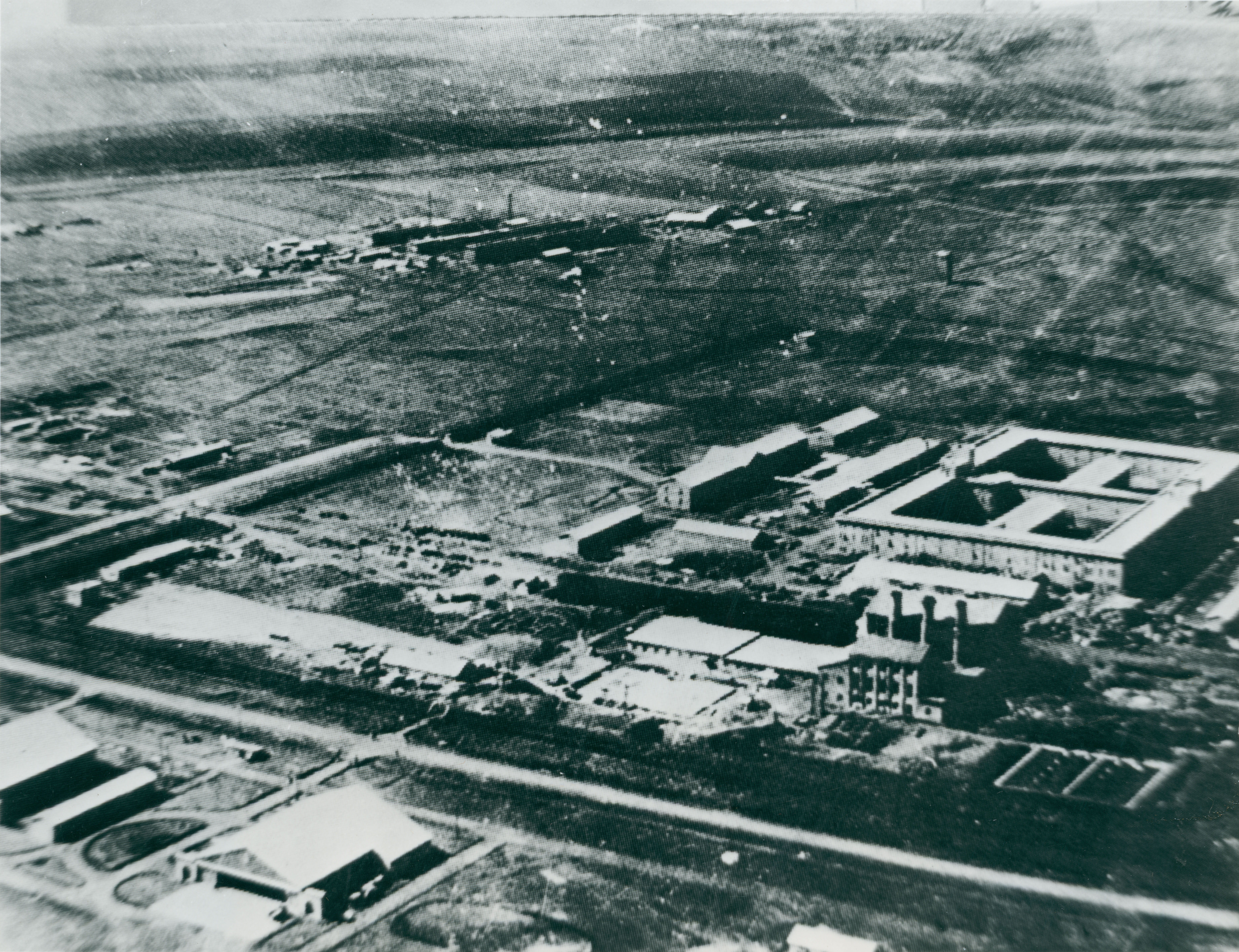 當年日本在中國東北平房所設的七三一部隊(細菌戰)總部鳥瞰圖。