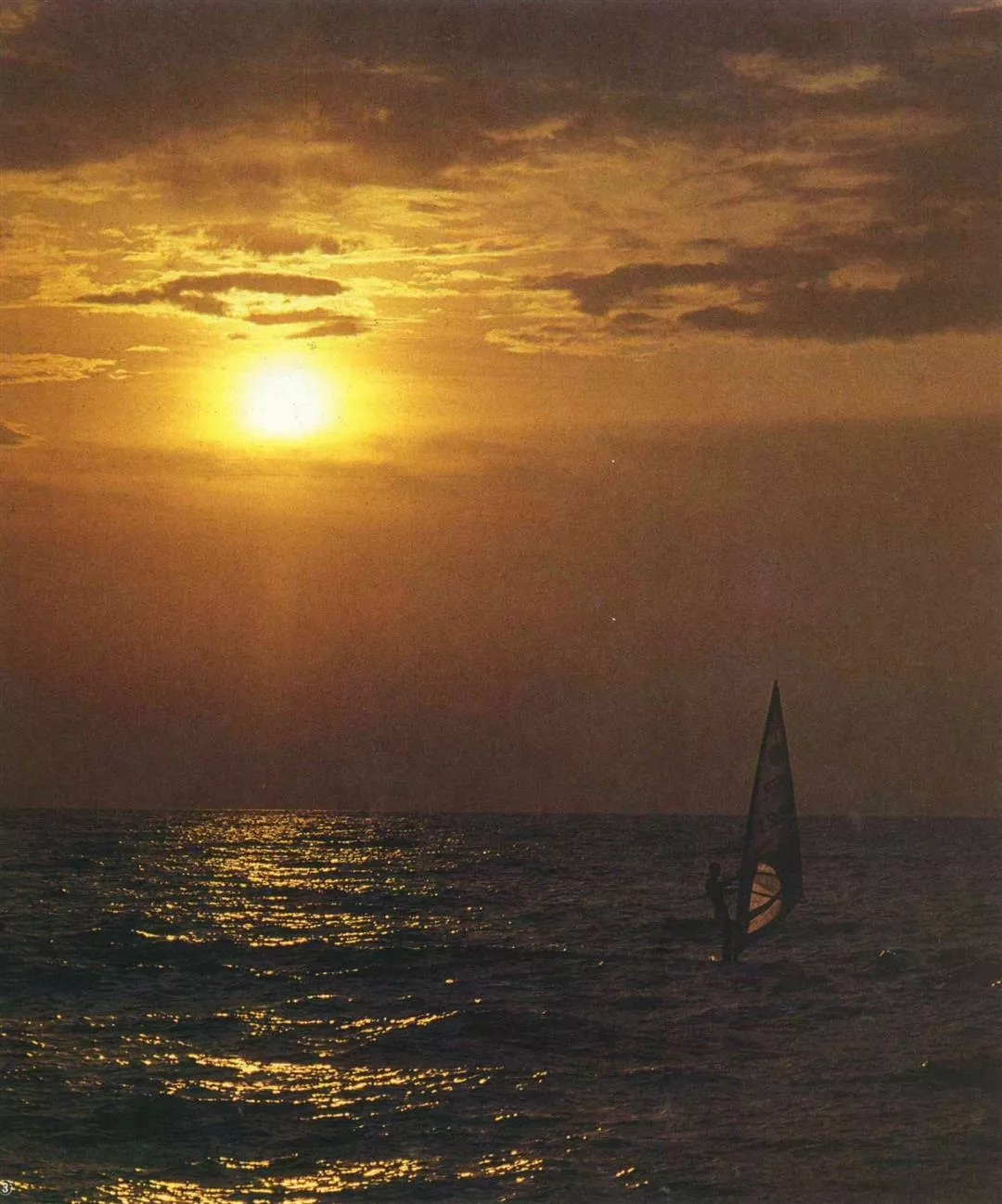 一般人印象最深刻的畫面,大概是有「躍浪者樂園」之稱的夏威夷毛伊島情形:數十丈高的巨浪,當頭罩下,一人一帆卻毫不猶豫地迎上前去,人站在浪板上,手抓著桅桿,乘風破浪,馳騁其間……。