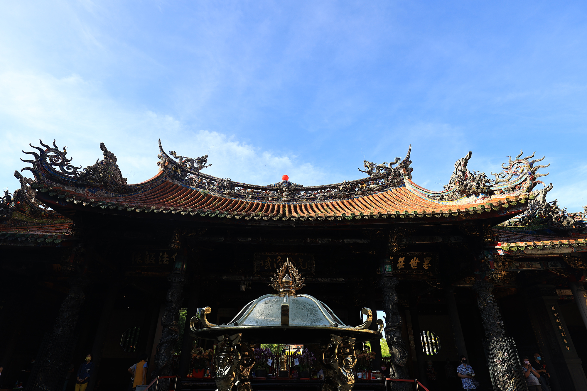 離開被火煉的貨櫃,順著坡地小路走到接近園區入口處,有座土地公小廟,逢年過節,鄭宗龍會帶著員工來此虔誠祭拜,感謝土地公鎮守這片土地的安寧。而對面的星巴克咖啡廳前面有座蓮花池,池裡的蓮花有時候是舞台上必要的道具。池中豎立著雲門第一代舞者、亦是雲門2創團藝術總監羅曼菲舞蹈時的青銅雕像,紀念她曾經栽培許多雲門人。
