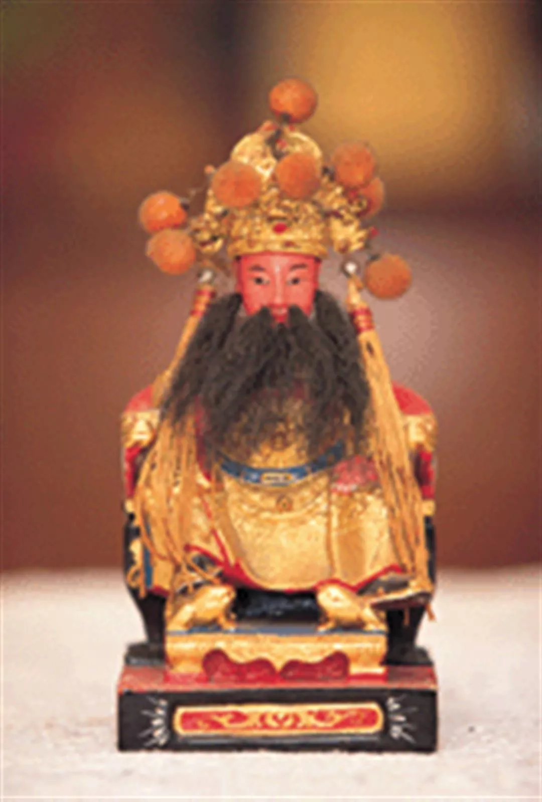 頭戴狀元帽,腦後垂著兩條長辮子,嘴上還有一隻螃蟹,年輕的田都元帥很好認。