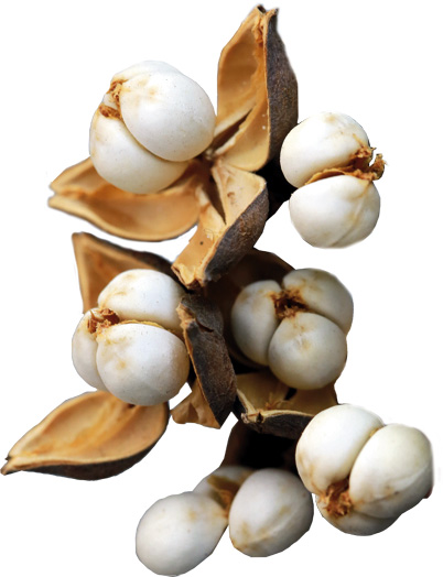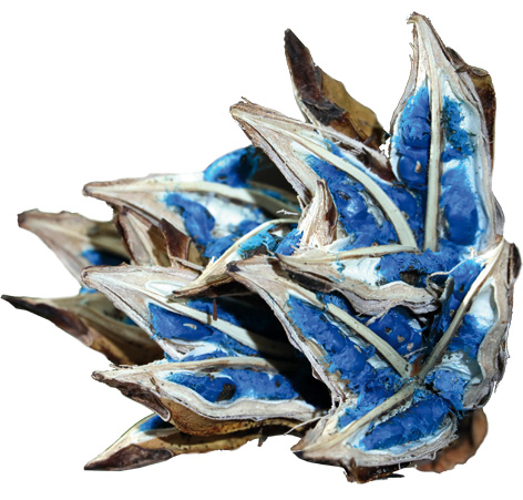 種籽不只漂亮,也很厲害,富藏生存的智慧。孔老夫子曾說「多識於鳥獸草木之名」,例如旅人蕉是野外求生不可不識的救命植物。旅人蕉的葉鞘、基部能儲存水分,在野外缺水危難時,可砍下取水解渴救命,其藍色的種籽,更是自然界少見,被梁媽趙英伶拿來做藝術創作。