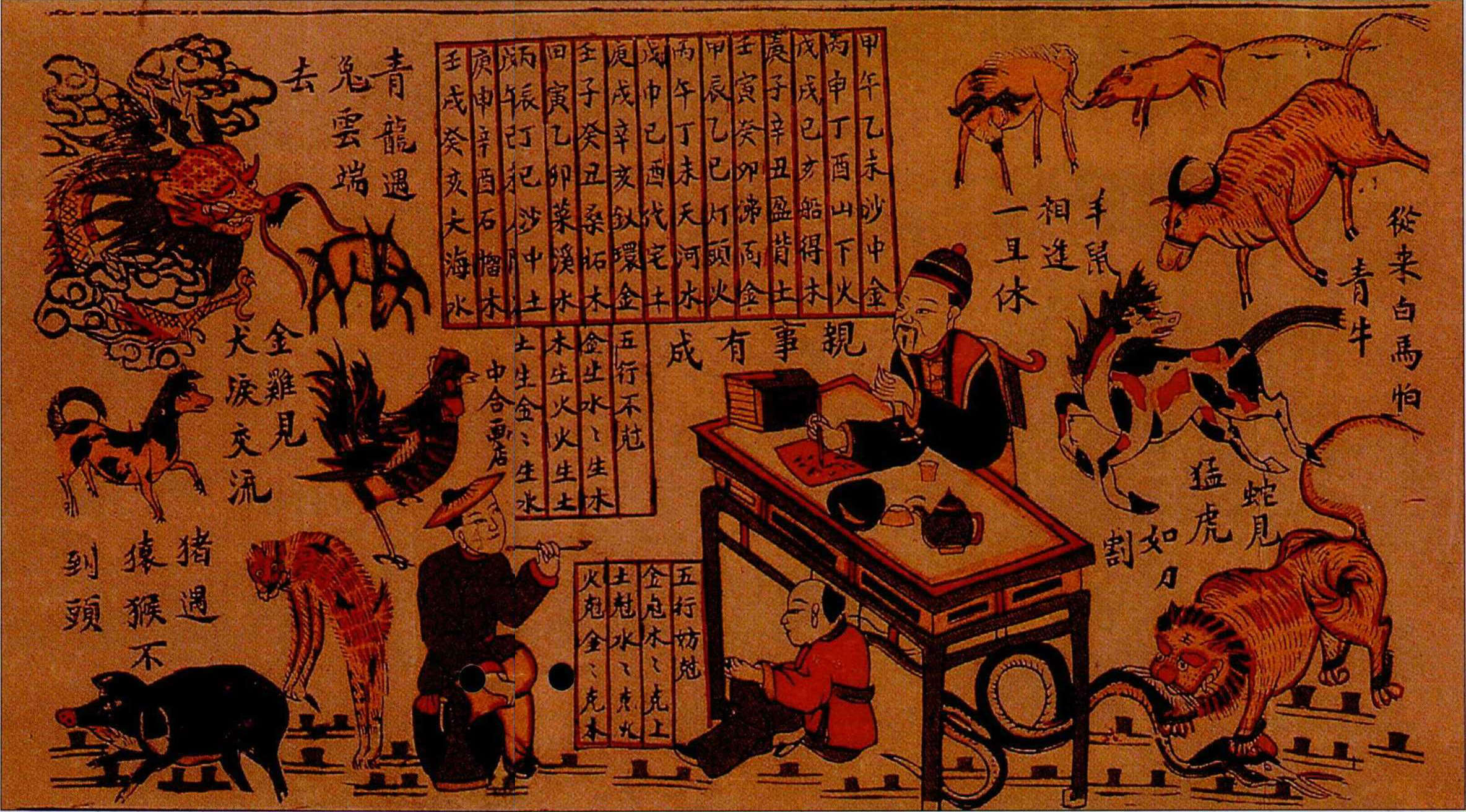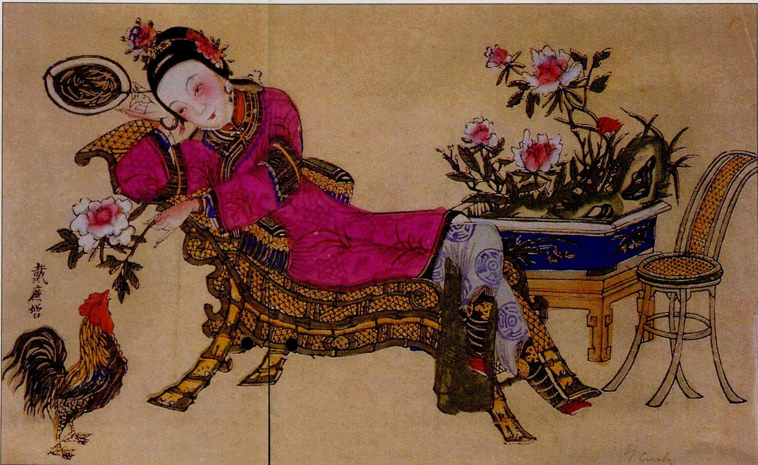首部介紹人物和場景:馴養鬥雞的高手紀渻子為國君訓練一隻「雞王」。