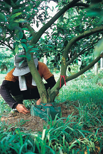 但這樣並不意味著就可以輕鬆因應蟲害。以柑橘類果樹最頭疼的「星天牛」來說,就無法使用不會殘留的農藥。鑽研有機農作多年的林碧霞博士解釋,每年4、5月左右,星天牛在樹頭(樹幹底部)附近產卵,幼蟲孵化後一旦鑽進樹幹,就會一路啃喫,把整棵樹心吃光。傳統的做法是在地面灑下一種毒性極高的「系統性農藥」——由樹根吸收,輸送到全樹,連末端果實都會吸收到,即使清洗、削皮也去除不了。