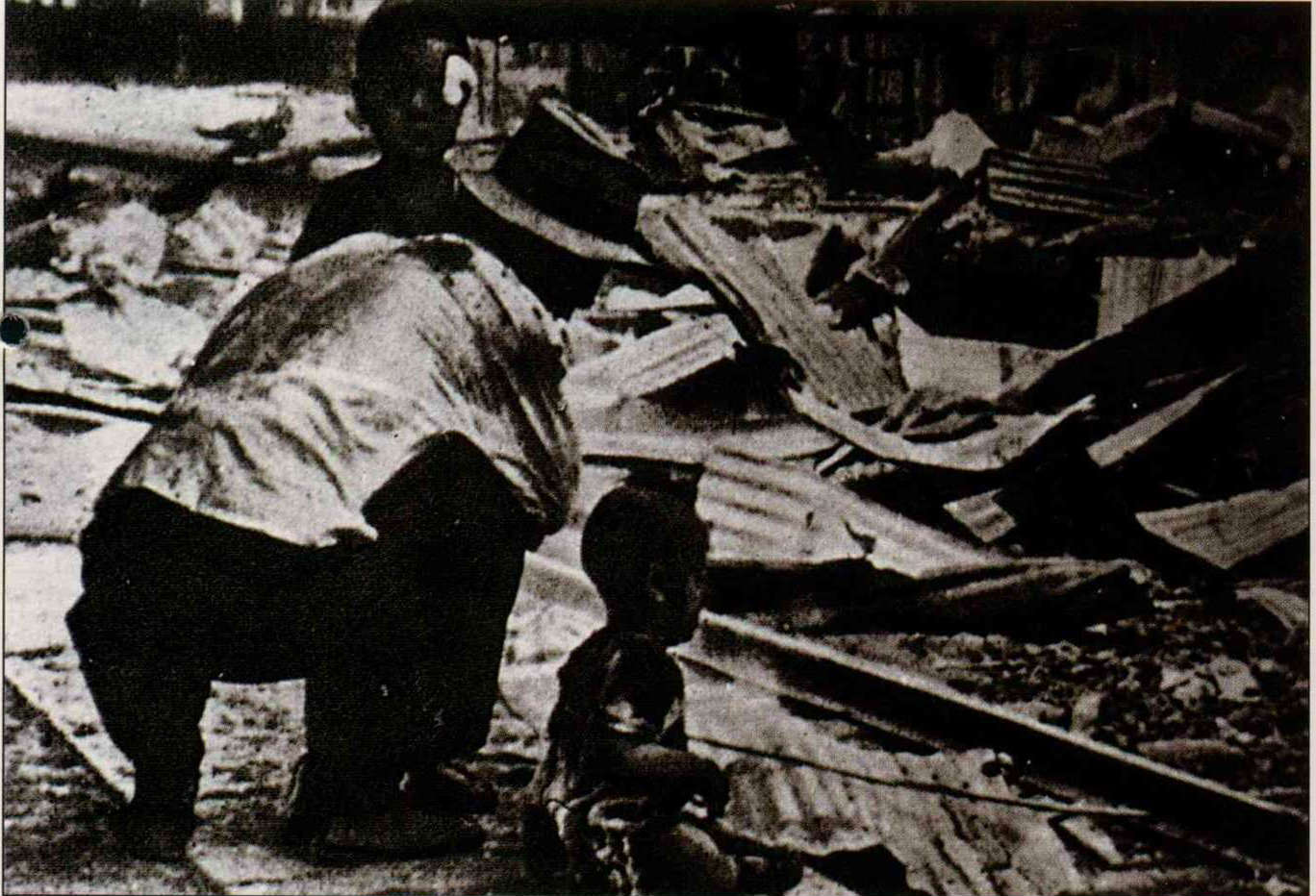 一九三七年上海淞滬之役,遭日軍轟炸後的上海車站,鐵軌旁剛失去母親的幼兒放聲大哭。他的父親蹲在一旁,懷中還抱著另一名稚兒。(王小亭攝,國軍歷史文物館提供)