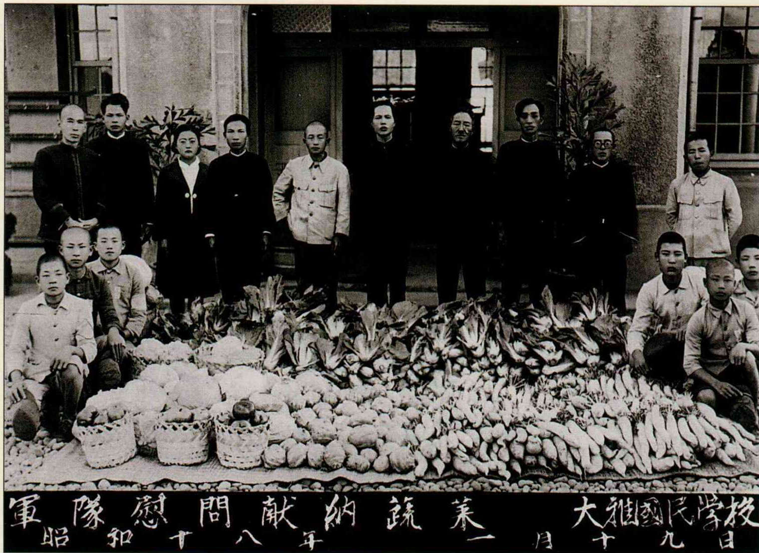 在台灣,也有類似「軍愛民、民敬軍」的宣傳照片。照片拍攝於一九四三年,已屆戰爭末期,正是台人物資最匱乏的時候。(陳慶芳提供)
