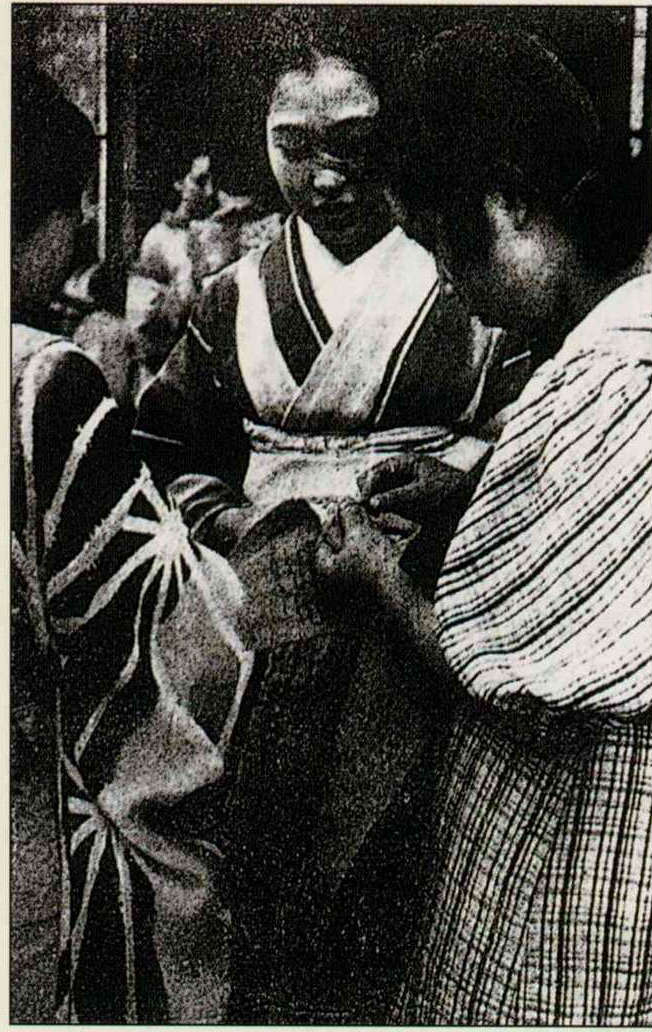 戰爭期間,日本人發動婦女在街頭縫「千人針」,做為前方將士的護身符。(中國國民黨黨史會提供)