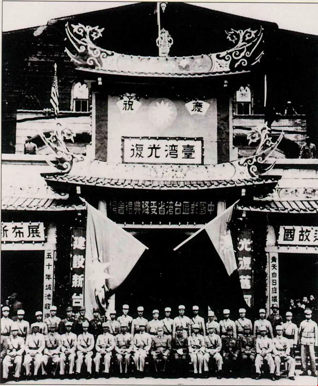 中國戰區台灣省受降典禮於一九四五年十月廿五日在台北中山堂舉行。(中國國民黨黨史會提供)