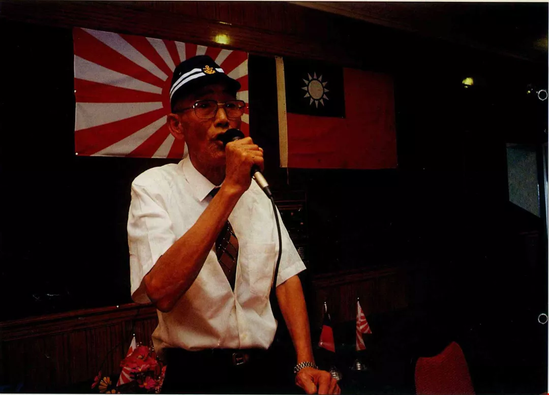 台籍日本兵的聚會裏,日本軍旗與中華民國國旗並列。「我是誰?」如今寶島上認同的疑惑與爭端,只有回到歷史的原點,才可能瞭解。(張良綱攝)(張良綱攝)