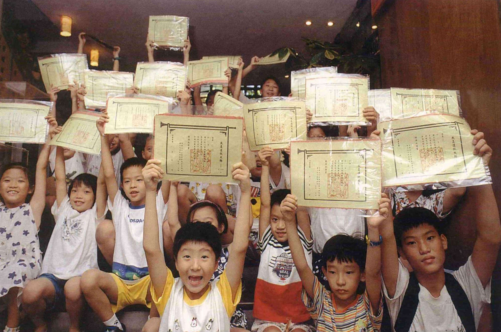 礙於空間,小朋友們最期待的手工抄紙區設在博物館的天台上。棚架下,小朋友一個個各捲起袖子,拿起小小的抄紙簾放入紙漿中,體會紙漿在手上飄動的感覺,然後交由解說員們以特急件速度將紙張烘乾,好趕在離去前,將小朋友自己做的紙,和寫有大名的獎狀交到每一個小朋友手上,恭禧大家完成今天的「紙博之旅」。