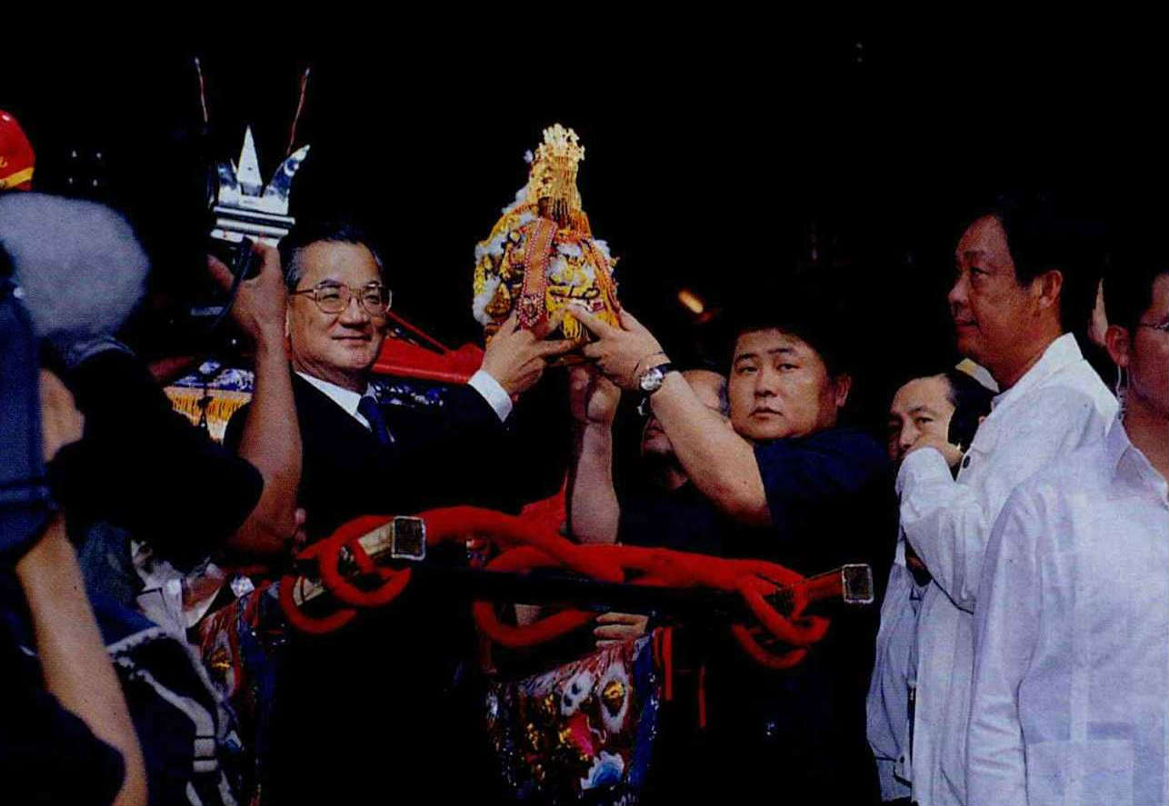 今年的媽祖安轎儀式,由副總統連戰主持,揭開明年熱門總統候選人互別瞄頭的前哨戰。(新聞局葉銘源攝)