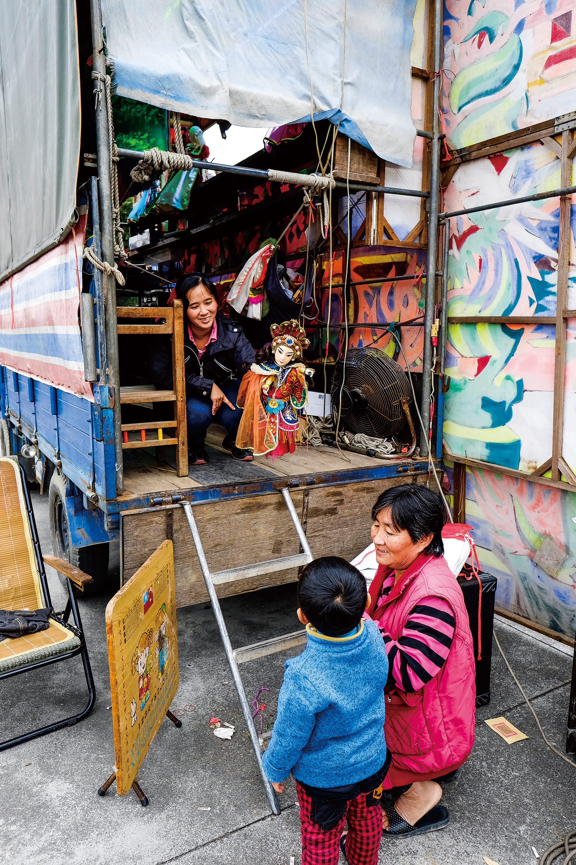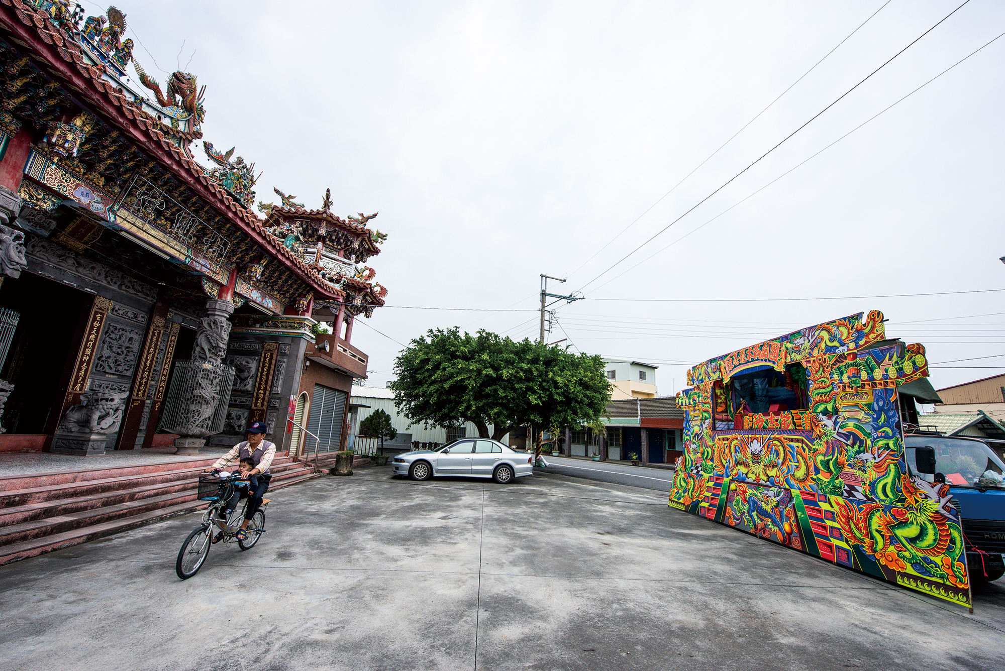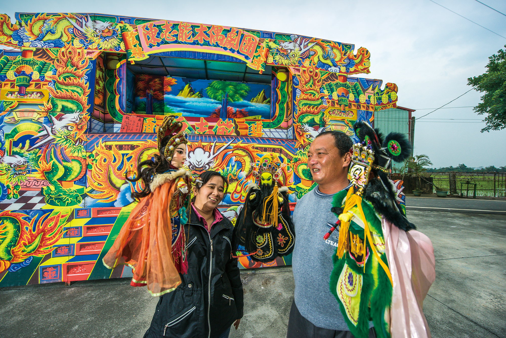 採訪當天,陳志能受邀到雲林縣斗南鎮的玄興宮(包公廟)幫江姓家族酬神還願,感謝神明過去一年對家族老小的保佑。夫妻倆開著載有全部生財家當的小貨車出發,到了會場,10分鐘內,一台貨車像變形金剛變身一樣,夫妻倆一個升起車頂,一個攤開木支架,貨車順勢化身為金光閃閃的舞台。