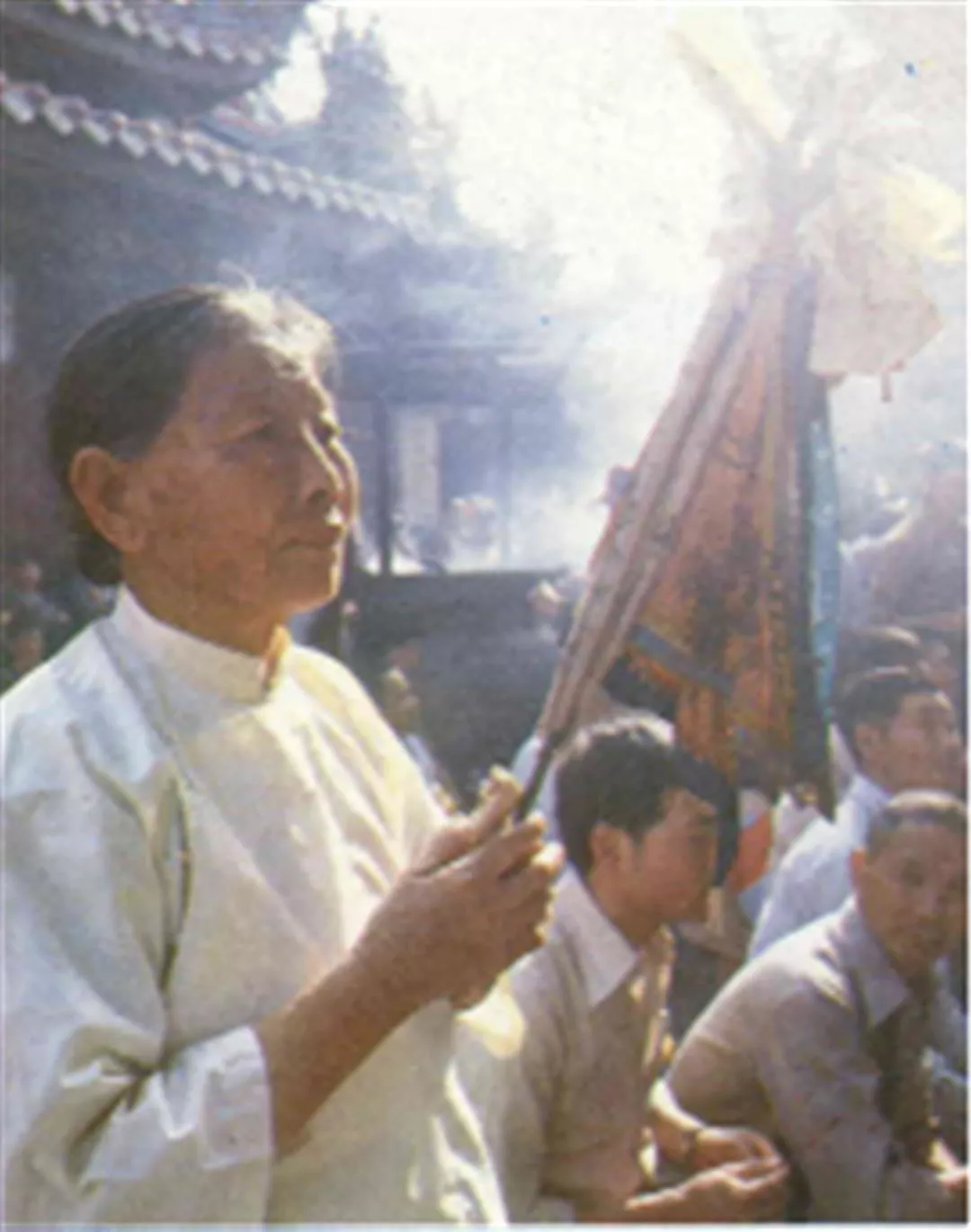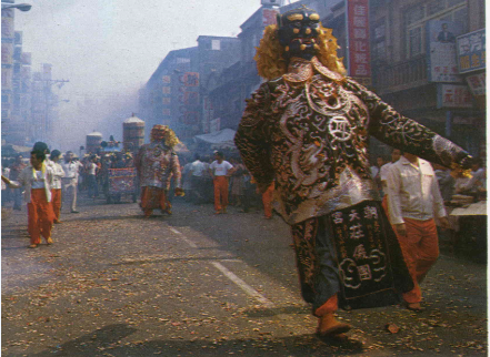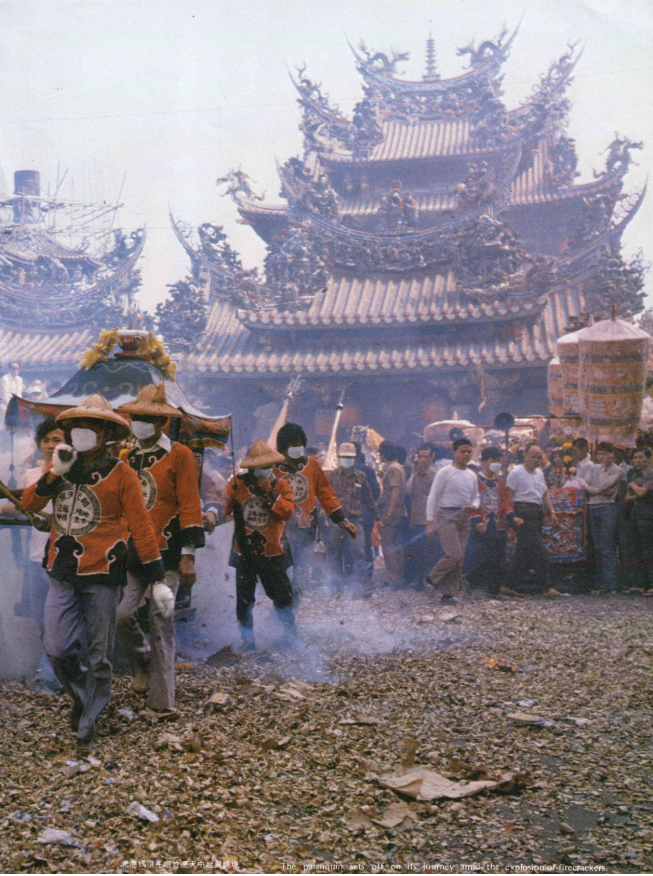 上午八時許,猛烈的鞭炮聲夾雜著緊密的鑼鼓聲,驚天動地地爆響開來;濃厚的砲煙喧騰上天,沖激成一朵灰色的蕈狀雲,隨後碎裂為千萬片的灰屑,雨般的灑落下來,沾在每個人的臉上、手上、衣服上,幾尺外的景物都被遮蔽得看不清楚了。但人群依然一波波地湧來,推擠向廟前,興奮地、熱烈地盼望媽祖「起駕」的一刻。