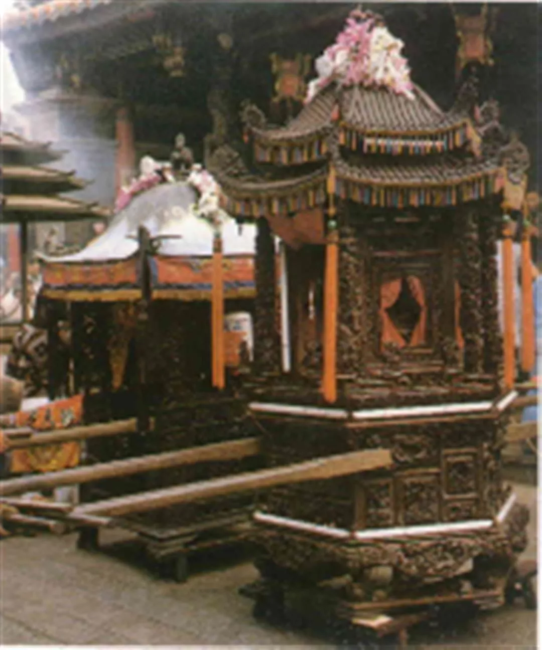 媽祖的侍從「千里眼」和「順風耳」在前面開道。根據民間傳說,千里眼和順風耳原是為害地方的二個妖怪,後為媽祖收服,甘願聽候使喚,遂成為媽祖的侍從。紅臉的千里將軍看得遠,綠臉的順風將軍聽得遙,輔佐媽祖的神察,以便在汪洋大海中,循聲覓跡,拯救遇難的人。