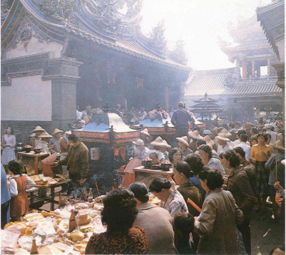 雲林縣北港鎮的朝天宮,是全台香火最旺盛的廟宇。廟中所供奉的媽祖娘,是當年直接從福建湄州分靈來台的,民間相傳最是靈驗。每年從農曆的正月開始,直到三月廿三日媽祖的生日,是北港的進香期。這段時間內,各地的善男信女紛紛前來進香、許願、還願,其他地方的分靈媽祖也回娘家來拜聖父、聖母殿,真是人山人海、熱鬧非凡。祝禱的儀式極其莊嚴、隆重,香客們滿心虔敬,祭品堆積如山,香煙繚繞,鞭炮聲不絕於耳,酬神戲目讓人目不暇給………。凡此種種,正顯示出自由中國人民的信仰自由,與民生的富庶豐裕。