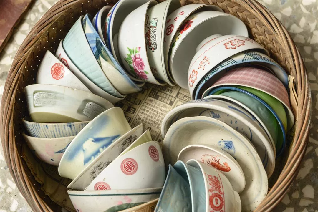 看著碗牆上羅列的數千個飯碗,各具特色,幾乎沒有一個完全相同。每位工匠簡筆一揮,竹葉兩三片或小花一兩朵。更多則是祈願的魚盤跟蝦盤;「在生活艱困的年代,碗盤裡要有魚有蝦實在不容易。我們的祖先對生活的祈願,都在這寫意的筆畫裡了,」簡楊同表示。