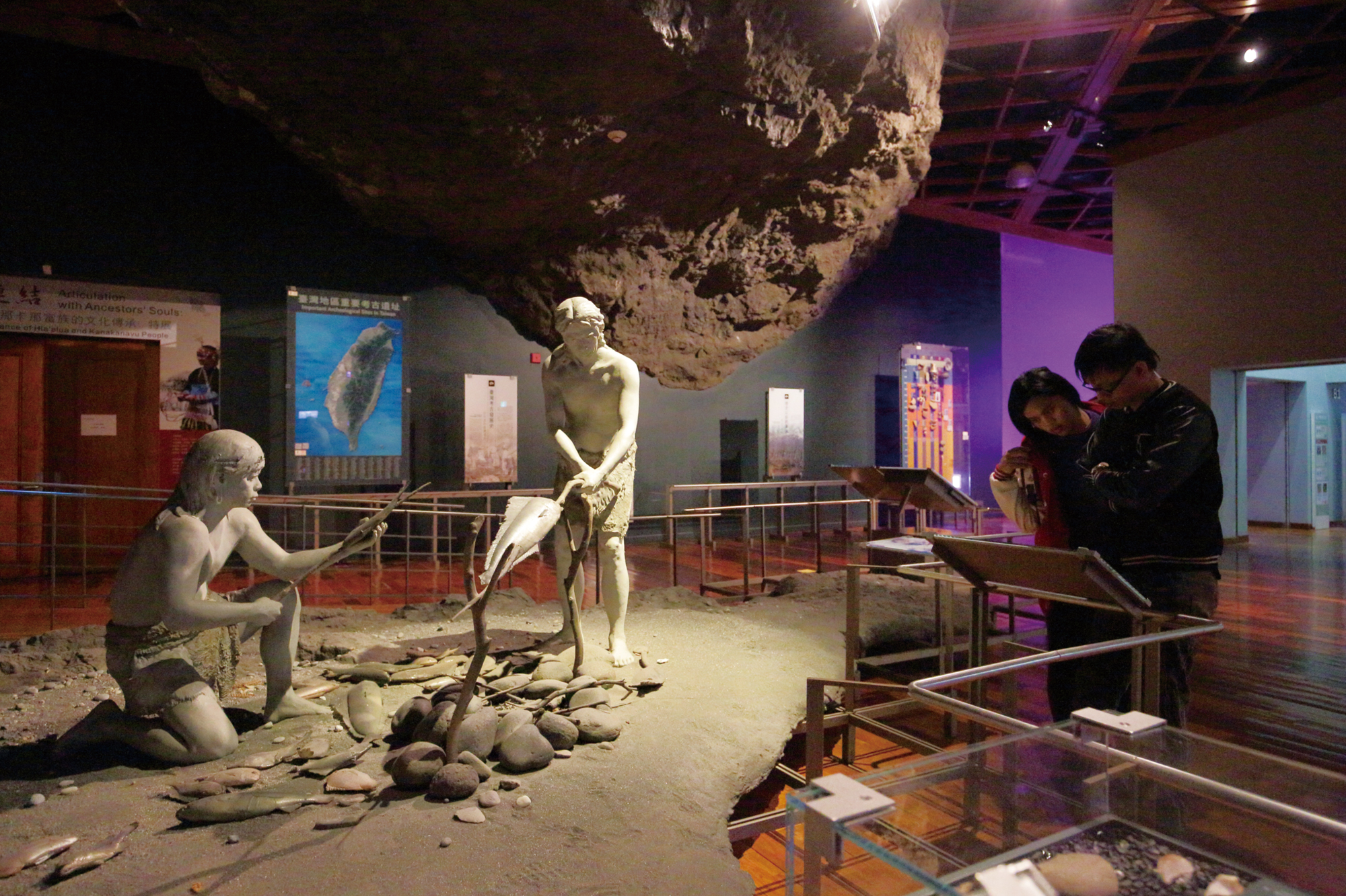 為了讓民眾一覽台灣原住民全貌,置於大廳正中央的互動裝置,只要按下按鍵,排灣、魯凱、阿美、卑南……等各族資訊就會出現。大廳底部左右兩側的舢舨船和石板雕飾,則標明原住民社會的山海文化。順益台灣原住民博物館主任林威城解釋,達悟族是靠海維生的原住民族群,因此在館內特地陳列達悟族傳統捕魚用舢舨船,展現海洋文化的一面。