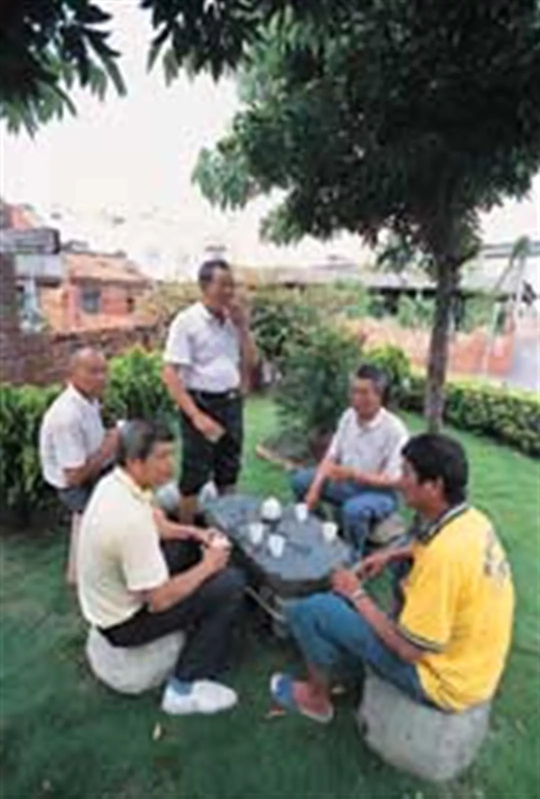 經過曾厝人的努力,社區中綠地隨處可見,居民也多了許多可以喝茶、聊莊稼的地方。