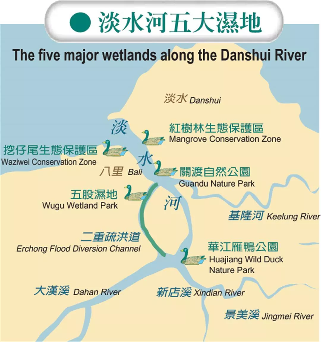 所幸,隨著近年淡水河、基隆河全線環河自行車道的貫通,重新開啟了人們一親淡水河芳澤的門扉,而由一群「綠人」耗時一年繪製的「綠色生活地圖」,以淡水河台北5大濕地串連的「生態廊道」為目標,可讓台北人隨著候鳥的腳步,一探淡水河的豐美樣貌。