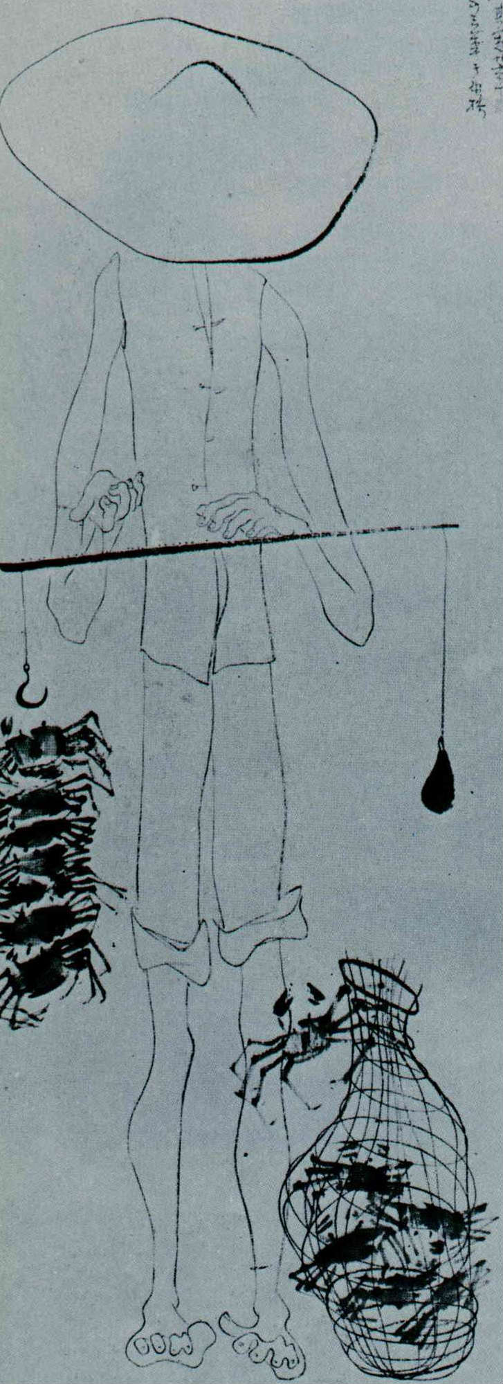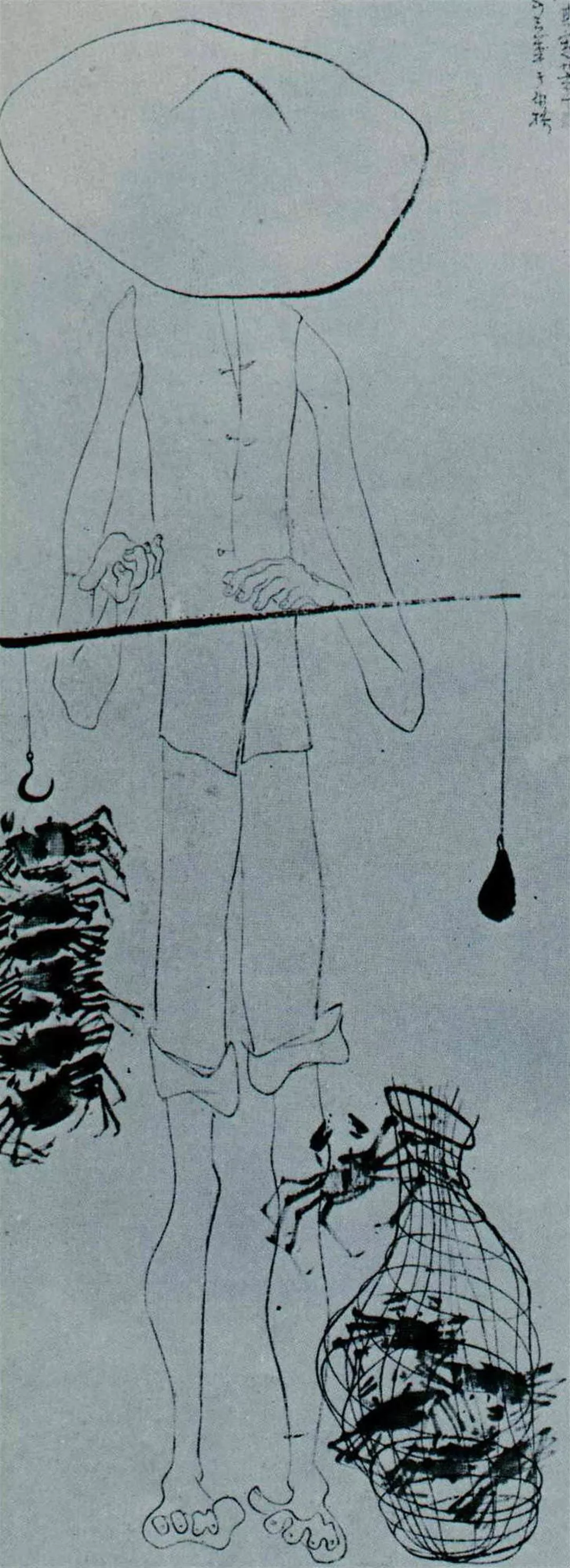 螃蟹常入詩畫。圖為陳其寬的水墨畫「稱」。(60×25cm,1953)