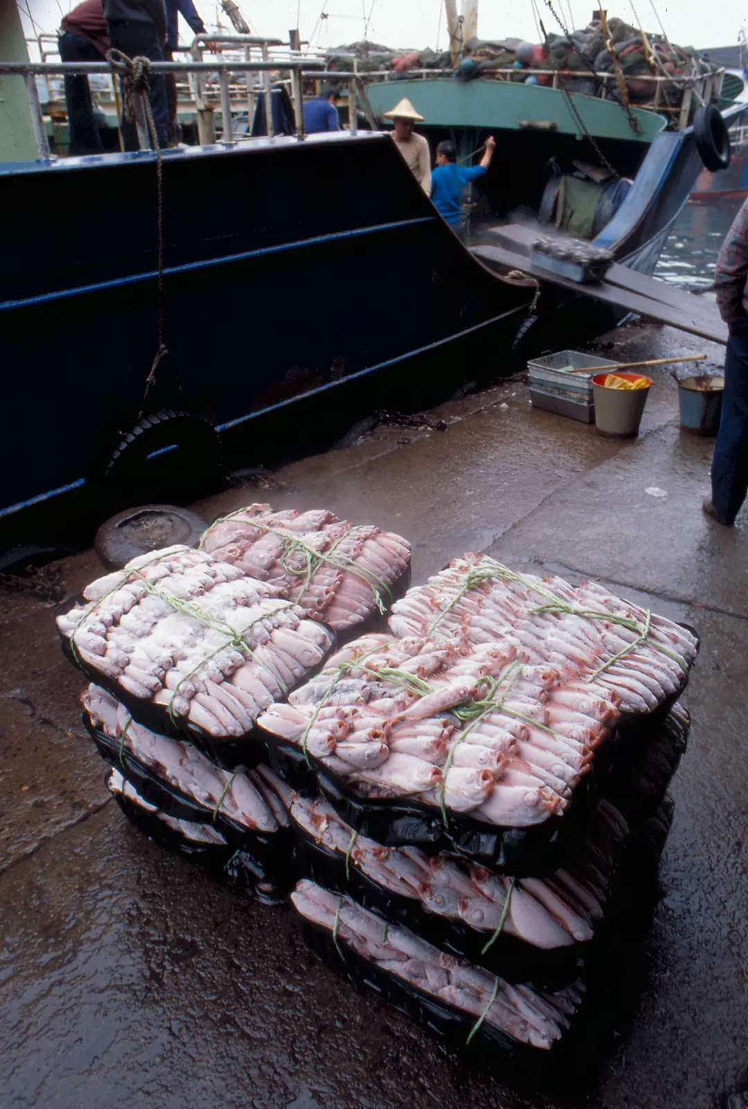 真正進入國內魚市場的鮮魚、蝦、貝,約為總數的百分之六十。其他有的在遠洋漁船停泊外國港口時,就被賣掉;有的迅速冷藏,甚至活生生地銷往日本;還有的直接運到工廠加工,做成罐頭或魚漿、魚丸等。