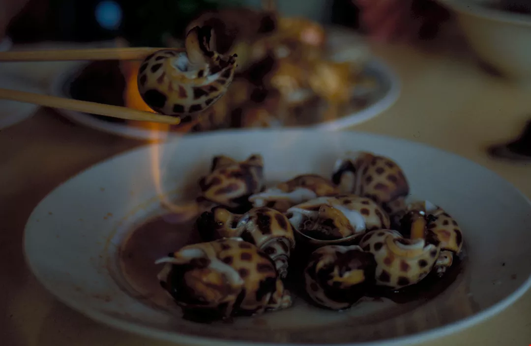淡水海產店的鳳螺,滾水一燙即上桌,典型的台灣吃法。(楊永山)