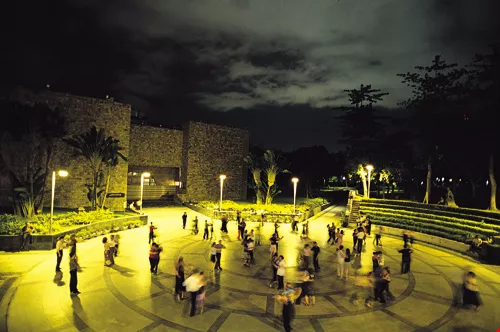 黃昏中,氣氛悠閒的台中美術館廣場上,民眾隨音樂翩然起舞,台灣民眾在經濟富裕後,已愈來愈重視休閒生活。