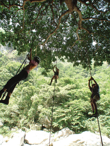 學者指出,培養「休閒技能」有助於跨越挑戰,並體驗心中油然而生的成就和樂趣。圖左至右分別為爬樹、攀岩、溪流泛舟課程。