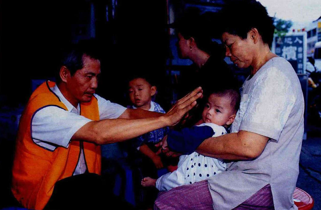 孩子,來收收驚,不用怕!」地震引起的恐慌、無助、麻木、憂鬱……等「創傷癥候群」,必須藉由心理輔導、民間信仰來慢慢撫平。(邱瑞金攝)(邱瑞金攝)