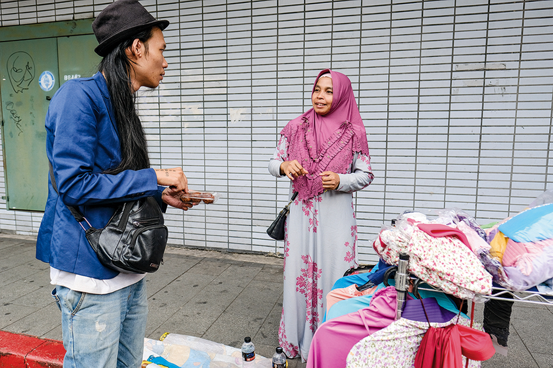 印尼街配合移工們的假日,只在星期天營業。假日的印尼街,充滿著音樂、聊天聲、店家吆喝與五顏六色的在地小吃,整條街彷彿活了過來,與平日黯淡寂靜的形象,截然不同。