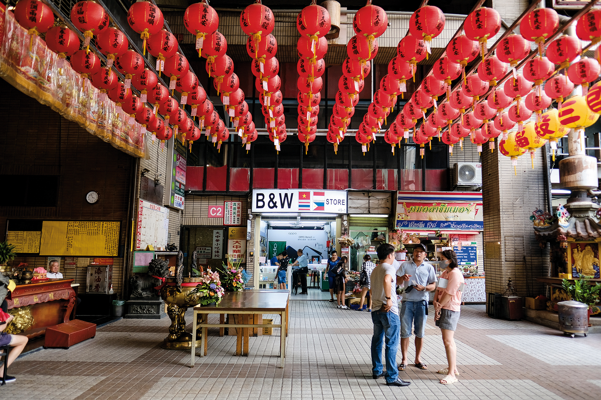 一旁是匯款公司MoneyGram,每到發薪日的時候,移工們就會到這裡來,將部分的薪水匯給家人。許家瑜說,台灣的銀行營業時間,移工們都需要工作,因此無法前往,而這樣的匯款公司,在假日會有櫃檯人員協助辦理轉帳事務,因此成了移工在台灣不可或缺的服務。