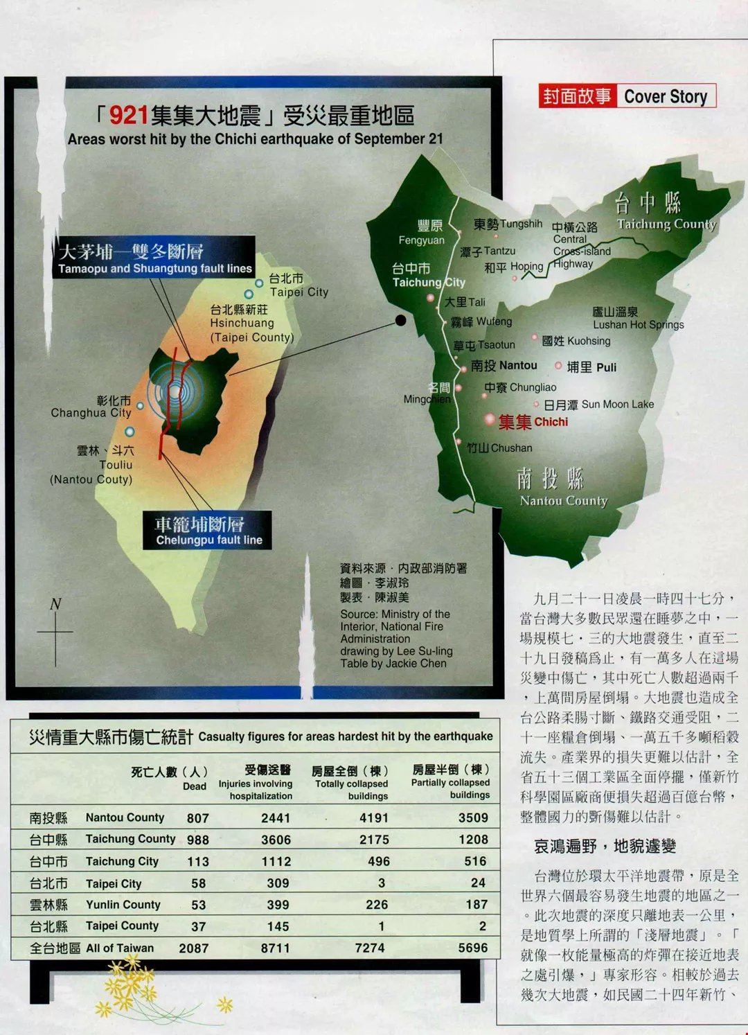百年難見的集集大地震尚未落幕,直至發稿前,在斷垣殘壁中,在幾成焦土的瓦礫堆中,還有許多生 死未明民眾在努力掙扎等待救援,對不幸罹難的兩千多名同胞,我們獻上最深沈的 哀思,對還在死亡邊緣掙扎的受困民眾,我們則寄予無限的祝禱。