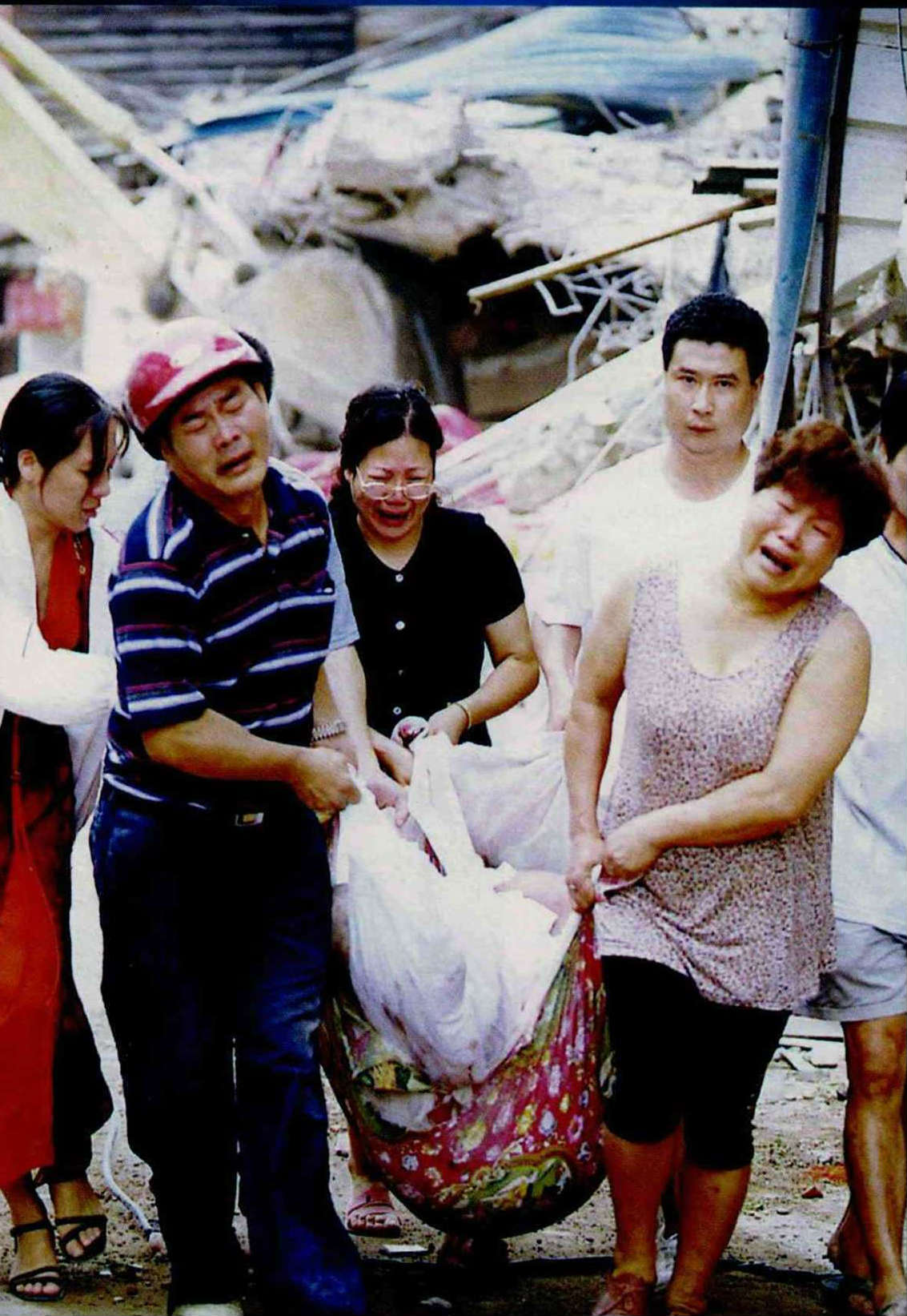 從瓦礫堆抬出罹難的親人,埔里受災民眾傷心欲絕。(聯合報林錫銘攝)(聯合報林錫銘攝)