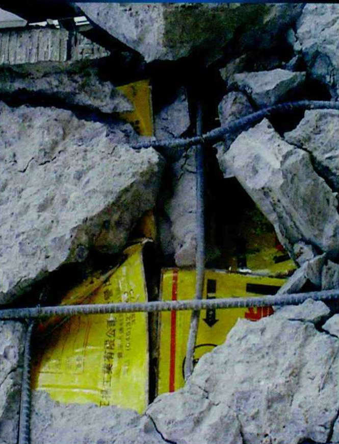 台中縣災區傾倒大樓的樑柱、牆壁內可見許多空鐵罐。建築師公會解釋,在裝飾樑柱內放置空鐵罐,是民間習用的施工法,但一般而言,不大可能在主樑內放置空鐵罐,現在各地的土木結構技師已開始調查該地高樓倒塌原因,不少起造建築商也已被收押。(聯合報周宗楨攝)(聯合報周宗楨攝)