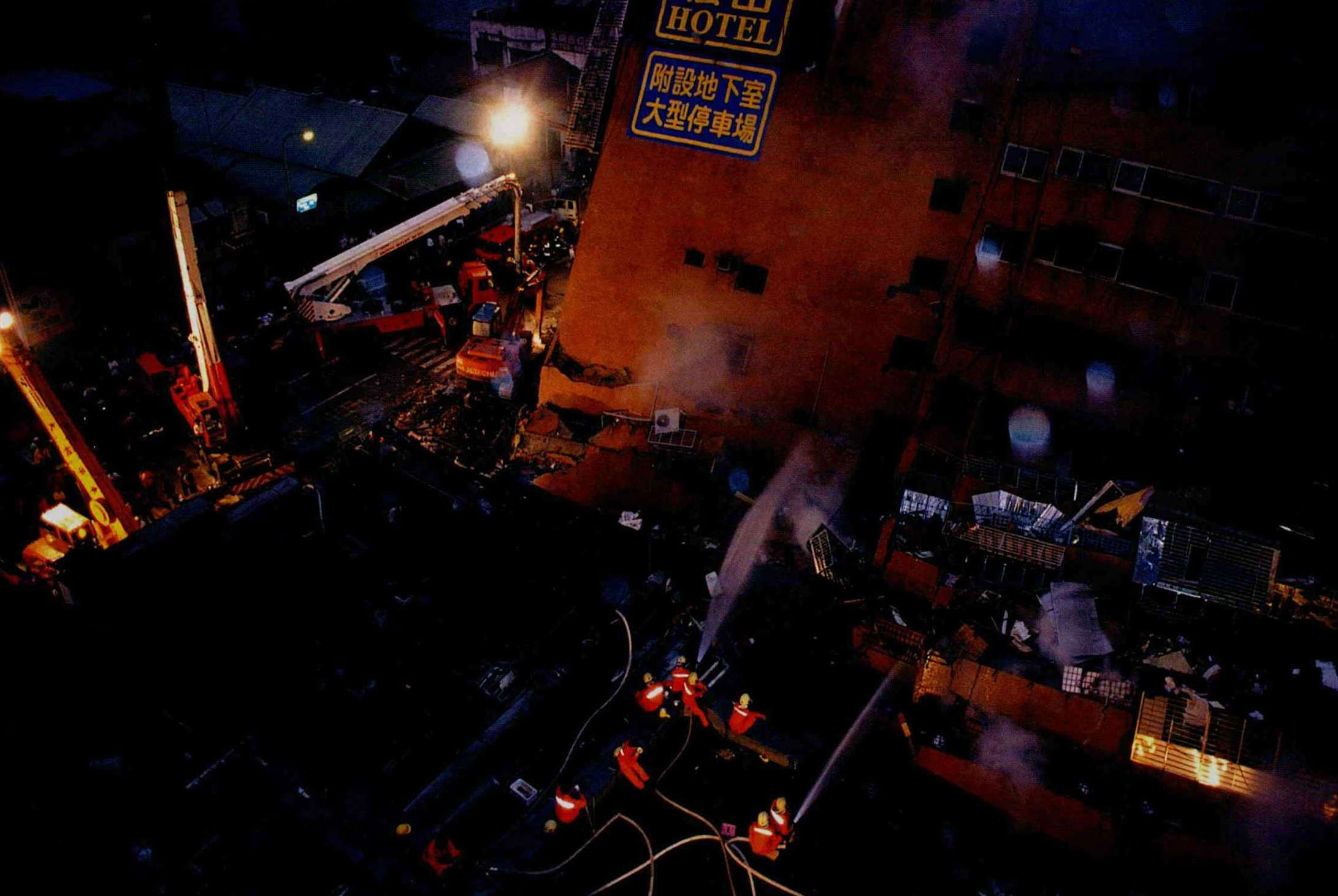 專業救難隊伍趕在災變第一時間中搶救可使傷亡減至最低。圖為台北東星大樓災變現場。(邱瑞金攝)(邱瑞金攝)