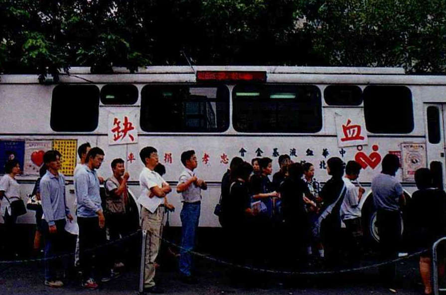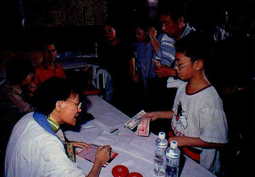 大震之後,民間賑災挹注源源不絕,捐血車人潮終日不斷。台北市政府前,各方送來的救援物資堆積如山,小朋友也省下零用錢捐給災民。(卜華志攝)(卜華志攝)