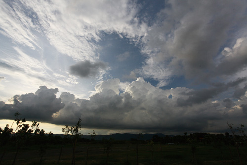 災後一年,從旗山沿著台21線往北行駛,進入杉林後很容易就找到了大愛園區,以大片草坪山丘和石頭堆疊而成的入口意象十分醒目,入園後一路可見石頭、草坪和漂流木構築的景觀,筆直寬敞的道路以透水的連鎖磚鋪設,生態工法的痕跡處處,兩旁一棟棟灰色洗石牆的屋舍素雅樸實,排水溝旁的小樹在偌大的園區裡顯得稀疏,取名「和氣街」、「合心街」的街道則流洩出濃濃的慈濟風格。