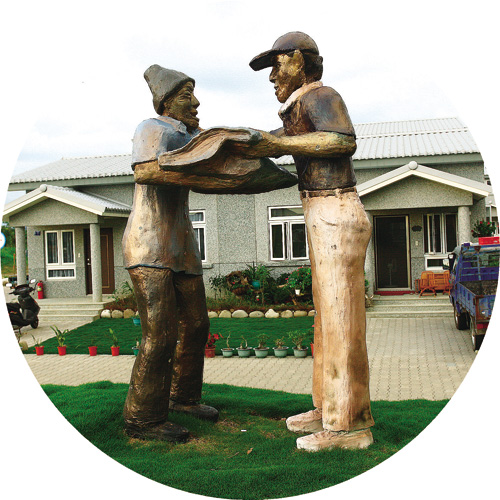 大愛園區的永久屋採輕鋼加高強度H鋼結構,具備抗震、防風、防火、防潮等功能,歷經劫難的莫拉克災民即將在此展開新生活。圖為大愛村內桃源鄉村民。