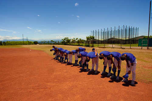 「謝謝球場!球場再見!」孩子們以宏亮的聲音表達謝意。在得之不易的龜山鄉棒球場,每天練習過後總是充滿著感恩之情。