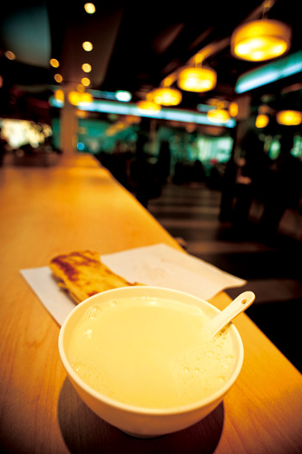 創立於民國47年,原就名氣不小,尤其是日、港籍遊客最愛的阜杭豆漿店,如今一改過去樸拙模樣,以大扇透明玻璃隔間,讓消費者可以清楚看到製作過程。