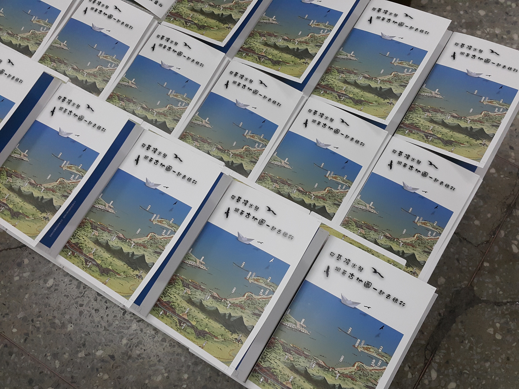 走進基隆舊火車站的展場,台灣八景圖由上方一幅幅垂懸而下,20幅古地圖綿延牆面,《臺灣鳥瞰圖》鋪列在地板上,每張圖好像喁喁說著一個怎麼也說不完的故事。