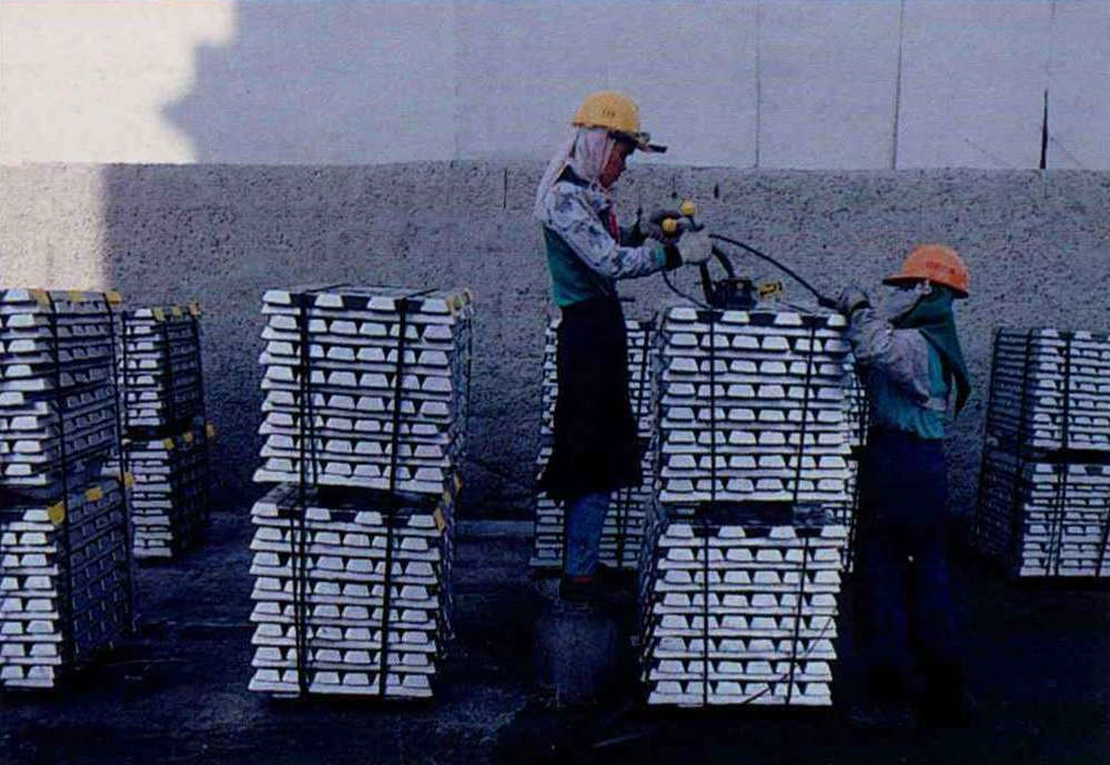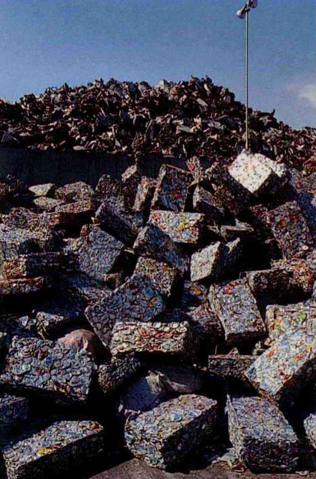 回收的鋁罐送進焚化爐冶煉之後,又變成一塊塊可用的原物料,是產業生態化體系的技術基礎。(邱瑞金攝)