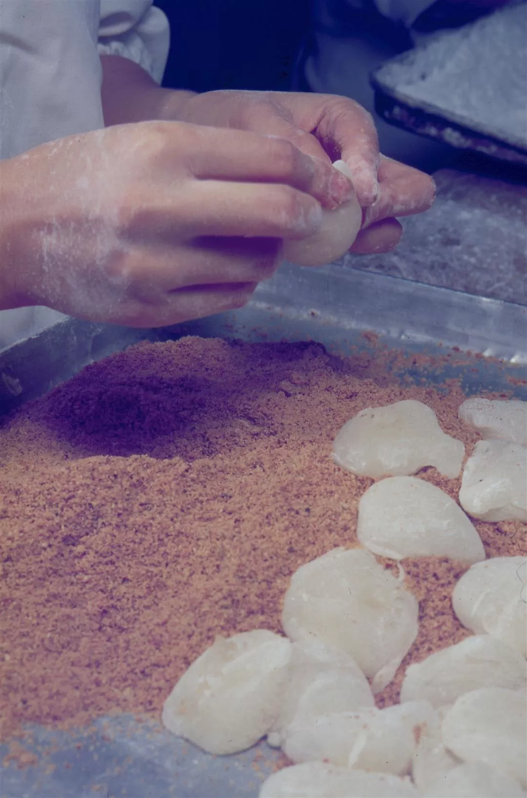 粟餅的製作,多為家庭式小工廠,這是包花生粟餅的情形。(張良綱)