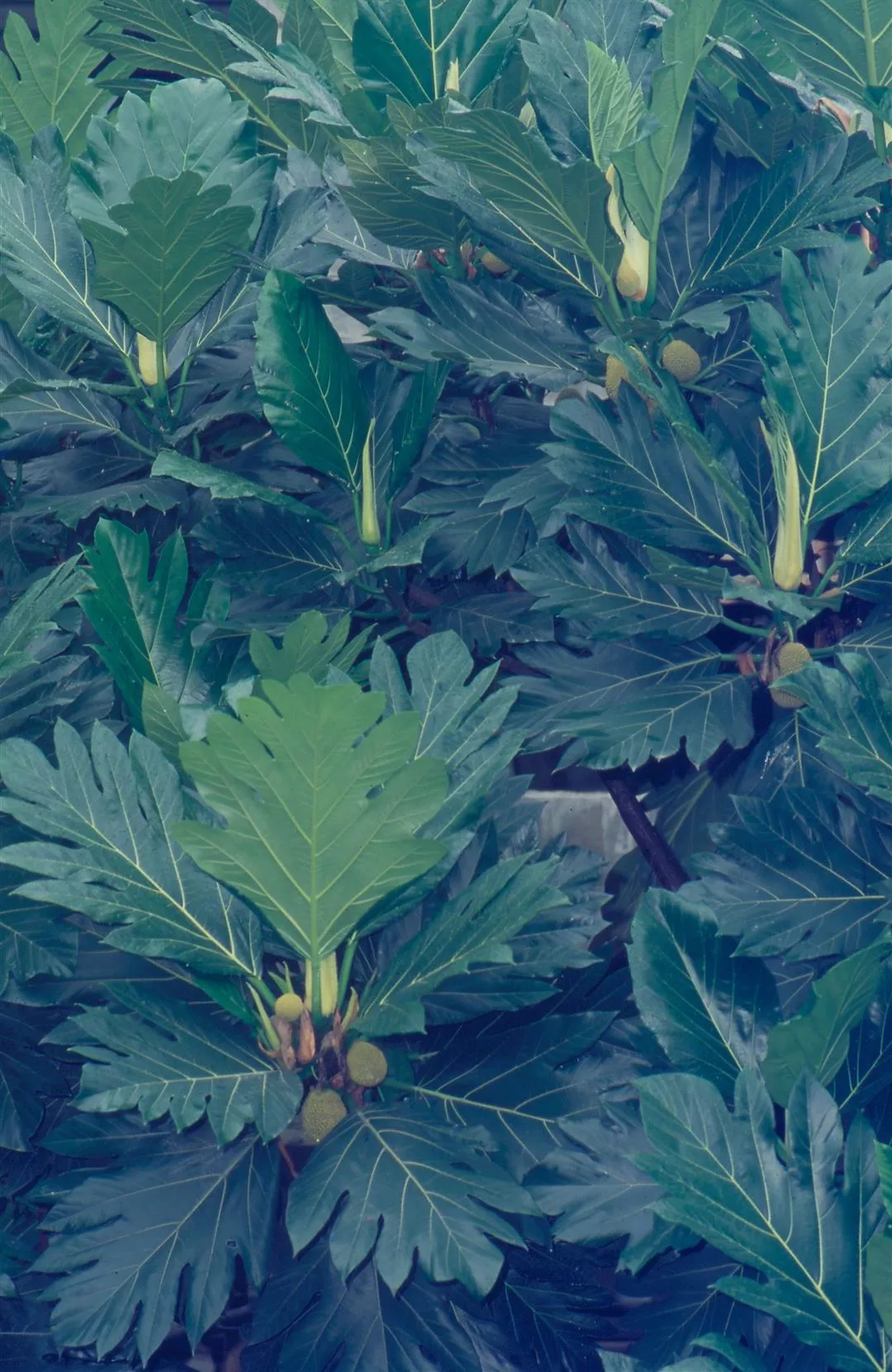 大剌剌的麵包樹也是花蓮街景的要角。六、七月間,樹上果實纍纍,此地喚作「吧嘰魯」,把它加上小魚乾燉湯——花蓮人最懂得它的美味。